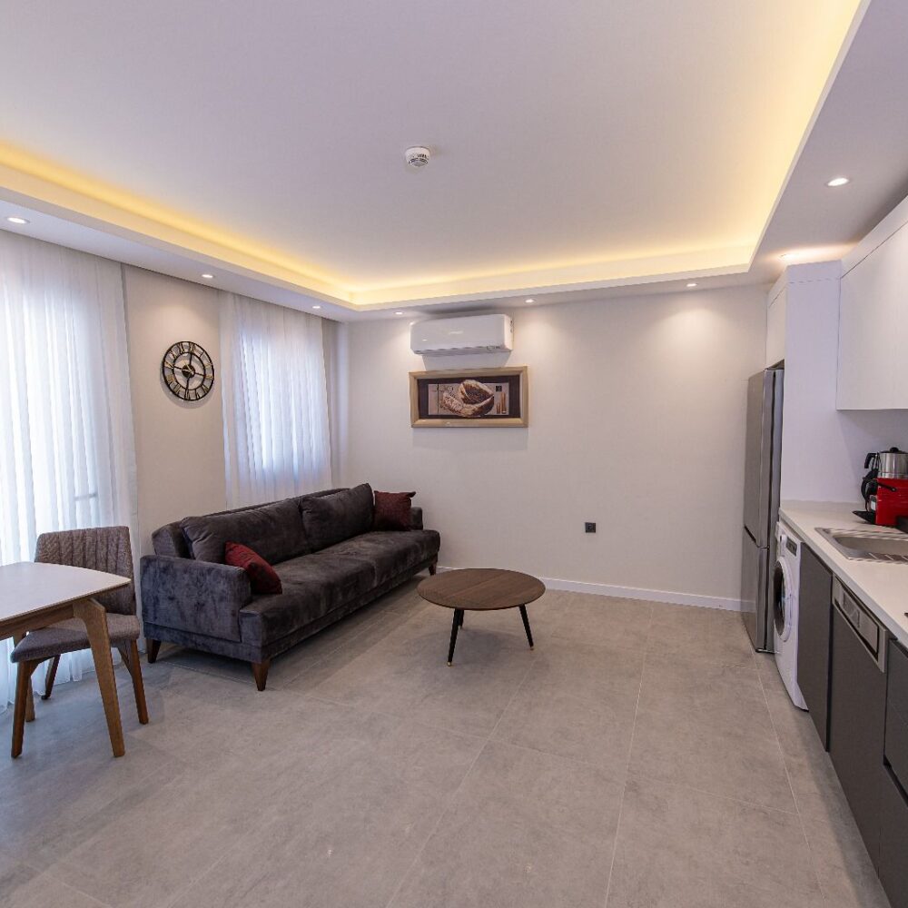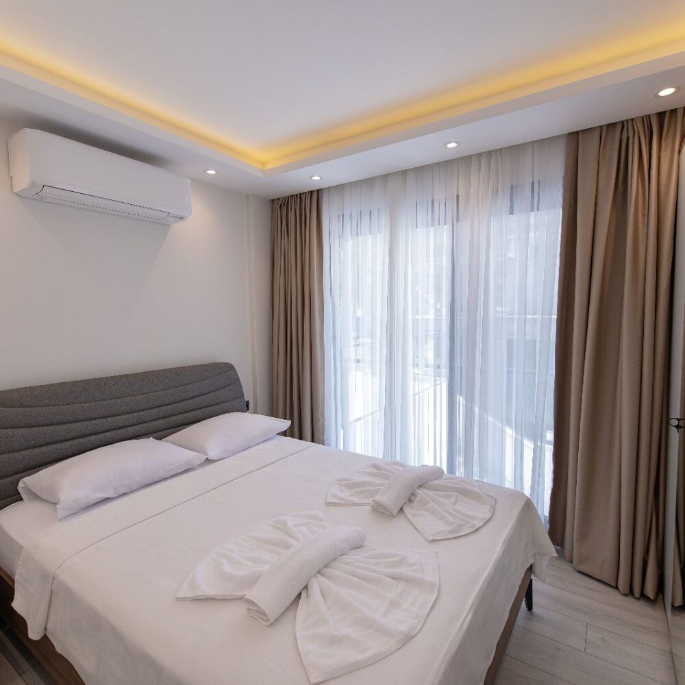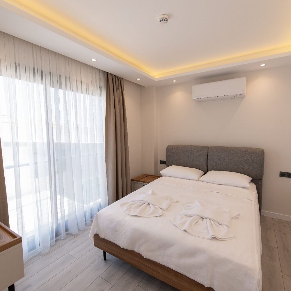 Çift kişilik yatak, Salonda 1 ek yatak , 0-3 yaş ücretsiz bebek yatağı , Ücretsiz Wifi internet , 50″ Smart TV , Buzdolabı, Klima , Çamaşır Makinesi, Bulaşık Makinesi, Kahve Makinesi, Ütü, Güvenlikli kasa